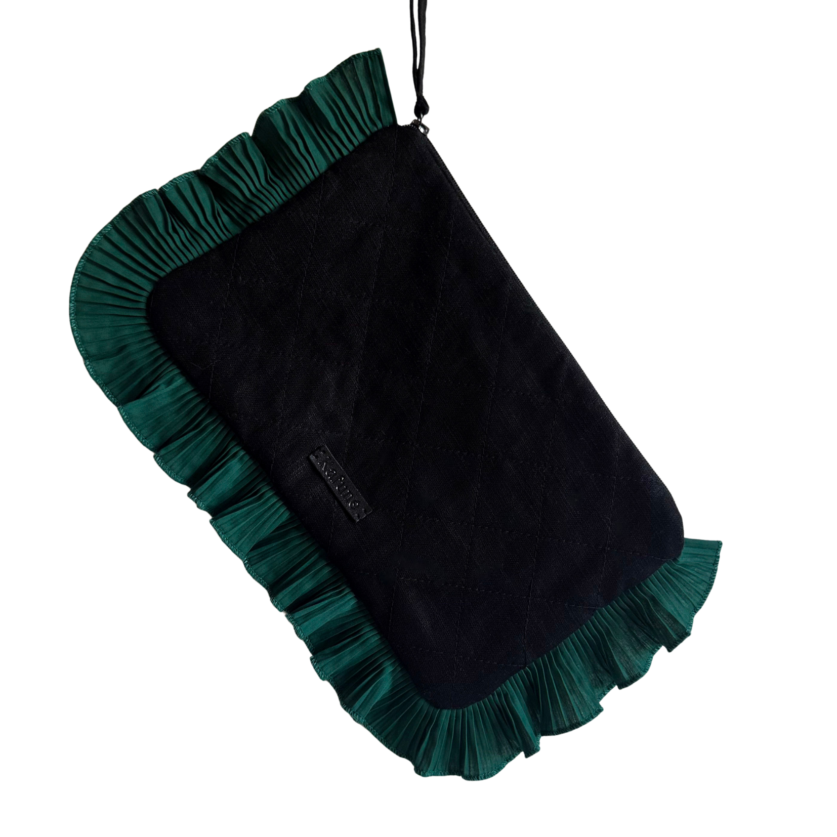 Esta versão em linho preto apresenta um fecho em tecido preto, com puxador em linho preso a uma argola, pensado para facilitar o abrir e fechar e acrescentar um detalhe único.